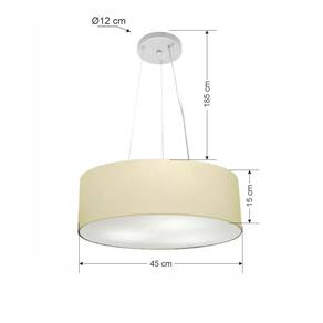 Lustre Pendente Cilíndrico Md-4184 Cúpula Tecido 45x15cm Algodão Crú