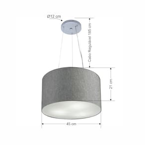 Lustre Pendente Cilíndrico Md-4185 Cúpula Tecido 45x21cm Rustico Cinza