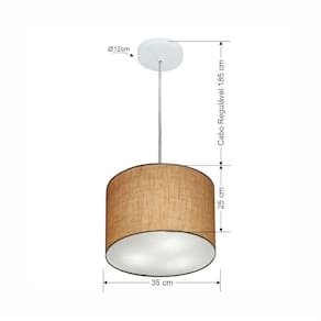 Lustre Pendente Cilíndrico Md-4211 Cúpula Tecido 35x25cm Palha