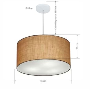 Lustre Pendente Cilíndrico Md-4242 Cúpula Tecido 45x25cm Palha