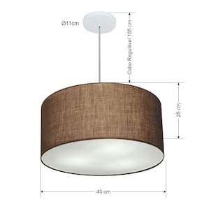 Lustre Pendente Cilíndrico Md-4243 Cúpula Tecido 45x25cm Café