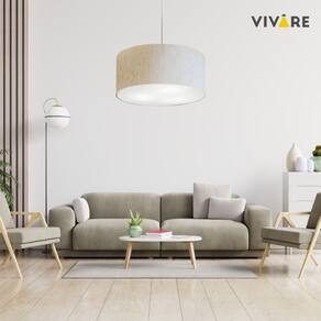 Lustre Pendente Cilíndrico Md-4244 Cúpula Tecido 40x25cm Linho Bege