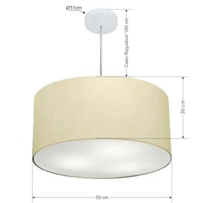 Lustre Pendente Cilíndrico Md-4245 Cúpula em Tecido 50x30cm Algodão Crú - Bivolt