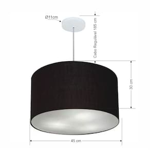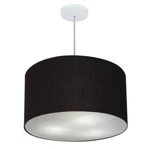 Lustre Pendente Cilíndrico Md-4250 Cúpula Tecido 45x30cm Preto