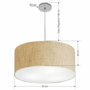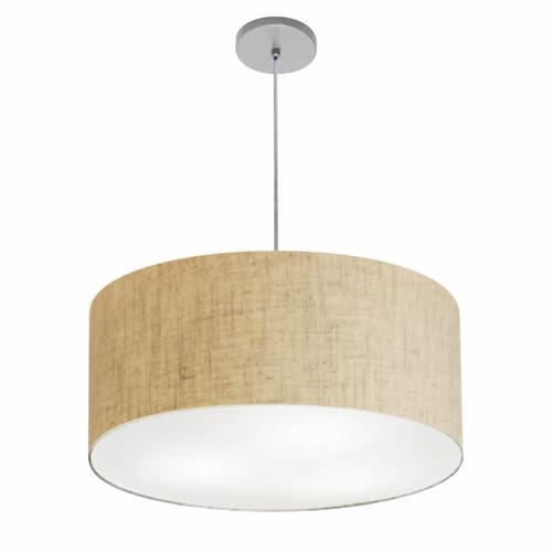 Lustre Pendente Cilíndrico Vivare Free Lux Pe-4386CZ Cúpula em Tecido - 50X25cm - Cor: Rustico-bege | Cor da Canopla: Canopla cinza e fio cristal