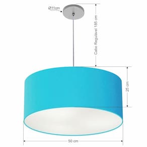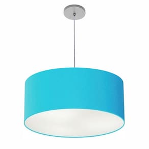 Lustre Pendente Cilíndrico Vivare Free Lux Pe-4386CZ Cúpula em Tecido - 50X25cm - Cor: Azul-turquesa | Cor da Canopla: Canopla cinza e fio cristal
