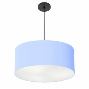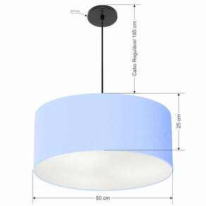 Lustre Pendente Cilíndrico Vivare Free Lux Pe-4386PR Cúpula em Tecido - 50X25cm - Cor: Azul-bebê | Cor da Canopla: Canopla preta e fio preto