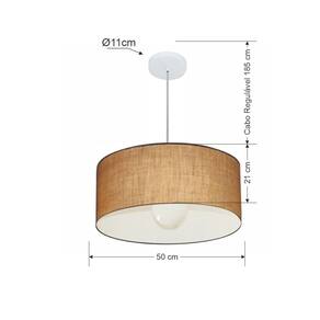 Lustre Pendente Cilíndrico Vivare Md-4052 Cúpula em Tecido 50x21cm - Bivolt - Cor: Palha | Voltagem: 127/220V
