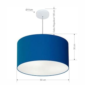 Lustre Pendente Cilíndrico Vivare Md-4101 Cúpula em Tecido 60x30cm - Bivolt - Cor: Azul-marinho | Voltagem: 127/220V