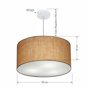 Lustre Pendente Cilíndrico Vivare Md-4101 Cúpula Tecido 60x30cm