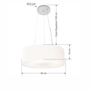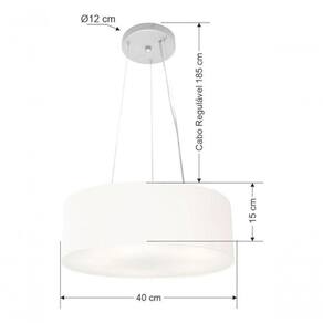 Lustre Pendente Cilíndrico Vivare Md-4181 Cúpula Em Tecido 40x15cm - Bivolt Branco 127/220v