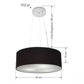 Lustre Pendente Cilíndrico Vivare Md-4181 Cúpula Em Tecido 40x15cm - Bivolt Preto 127/220v