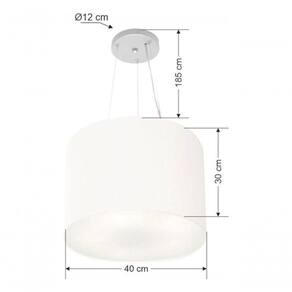 Lustre Pendente Cilíndrico Vivare Md-4183 Cúpula Em Tecido 40x30cm - Bivolt Branco 127/220v