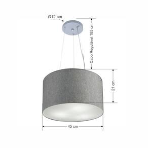 Lustre Pendente Cilíndrico Vivare Md-4185 Cúpula em Tecido 45x21cm - Bivolt - Cor: Rustico-cinza | Voltagem: 127/220V