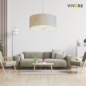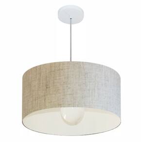 Lustre Pendente Cilíndrico Vivare Md-4206 Cúpula em Tecido 50x25cm - Bivolt - Cor: Rustico-bege | Voltagem: 127/220V