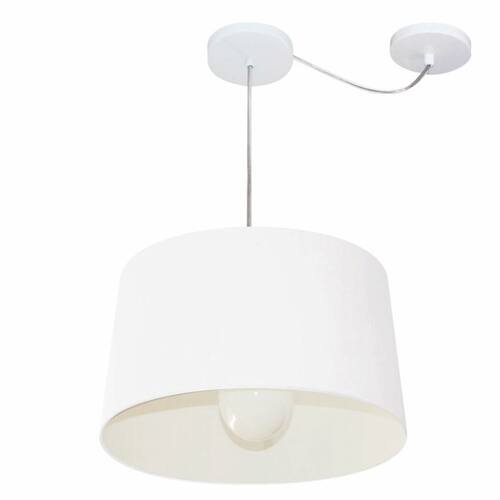 Lustre Pendente Cone Com Desvio de Centro Vivare Md-4275 Cúpula em Tecido 40x45cm - Bivolt - Cor: Branco | Voltagem: 127/220V