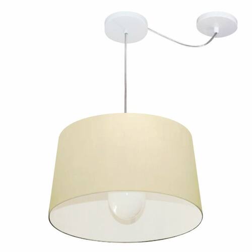 Lustre Pendente Cone Com Desvio de Centro Vivare Md-4275 Cúpula em Tecido 40x45cm - Bivolt - Cor: Algodão-Crú | Voltagem: 127/220V