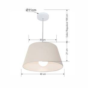 Lustre Pendente Cone Md-4039 Cúpula Tecido 21/40x30cm Branco