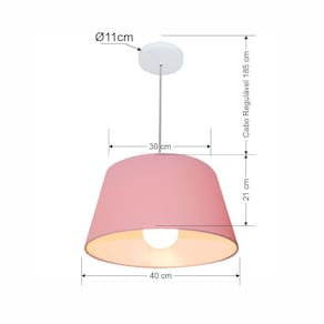Lustre Pendente Cone Md-4039 Cúpula Tecido 21/40x30cm Rosa Bebê