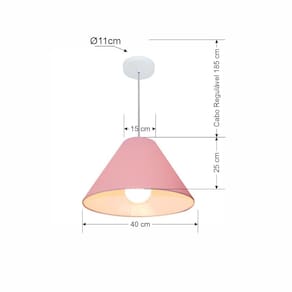 Lustre Pendente Cone Md-4078 Cúpula Tecido 25/40x15cm Rosa Bebê