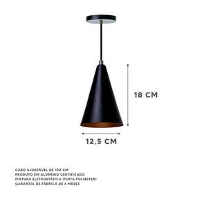 Conteúdo Da Embalagem: 01 Lustre Pendente Cone P Preto Alumínio Decoração