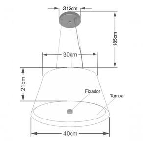 Lustre Pendente Cone Vivare Md-4119 Cúpula em Tecido 21x40x30cm