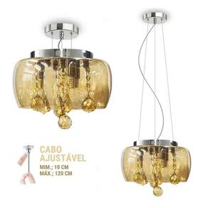 Versatilidade de Instalação: Possui cabo ajustável de até 120 cm, permitindo que você adapte a altura do lustre de acordo com a necessidade e o estilo do ambiente ideal para salas de jantar, halls e espaços comerciais . Lustre Pendente de Cristal Bacia 28cm Âmbar Luxo e Elegância