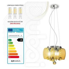 Compatibilidade Total: É Bivolt 110V/220V , compatível com a maioria das instalações elétricas. Lustre Pendente de Cristal Bacia 28cm Âmbar Luxo e Elegância