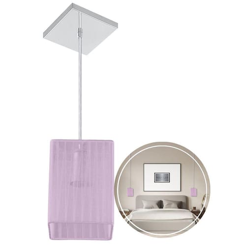 Lustre Pendente De Cupula Quadrada Organza Rosa