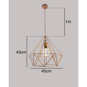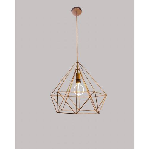 Pendente estilo retrô em formato de diamante fabricado e modulado em aço pintado. Deixa seu ambiente estilo retrô e ao mesmo tempo sofisticado com toque eleganteAplicação:mesa de jantar, recepção de comércios e etcEspecificações:Acabamento: pintura fosca eletrostáticaCor: cobre roseMaterial: açoCordão do pendente: cabo tecido 2 viasDimensões:Largura: 45cm Altura: 43cmCanopla base de fixação: 12cmItens inclusos:1x Pendentes1x Canopla de fixaçãoSoquete E271x cabo 1 metro Marca: LEDCOM