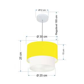 Lustre Pendente Duplo Cilíndrico Vivare Md-4161 Cúpula em Tecido 30x25cm - Bivolt - Cor: Amarelo-branco | Voltagem: 127/220V
