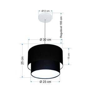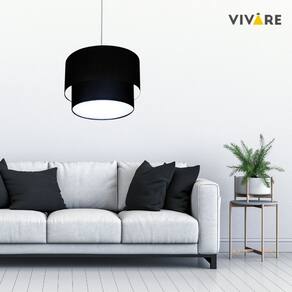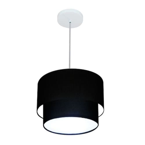 Lustre Pendente Duplo Cilíndrico Vivare Md-4161 Cúpula em Tecido 30x25cm - Bivolt - Cor: Preto | Voltagem: 127/220V