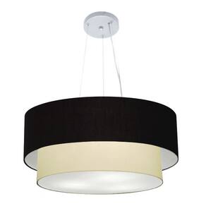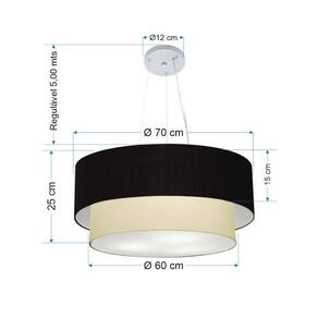 Lustre Pendente Duplo Cilíndrico Vivare Md-4179 Cúpula em Tecido 70x60cm - Bivolt - Cor: Preto-bege | Voltagem: 127/220V