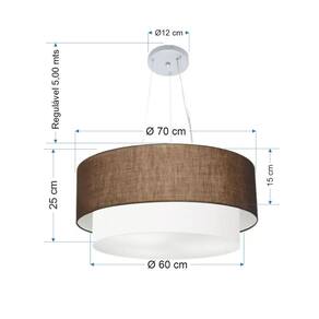 Lustre Pendente Duplo Cilíndrico Vivare Md-4179 Cúpula em Tecido 70x60cm - Bivolt - Cor: Café-branco | Voltagem: 127/220V