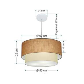 Lustre Pendente Duplo Cilíndrico Vivare Md-4353 Cúpula Tecido 60x50cm