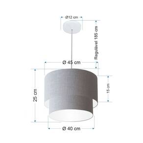 Lustre Pendente Duplo Cilíndrico Vivare Md-4354 Cúpula em Tecido 45x40cm - Bivolt - Cor: Rustico-cinza-branco | Voltagem: 127/220V