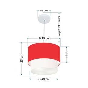 Pendente Moderno Indicado para decoração área interna, como mesas, sala de estar, sala de jantar, suíte, quartos, corredor, hall, mezanino, escadas, churrasqueira, lareira, área de circulação, lojas, comércios, restaurante, varanda, balcão.DimensãoCúpula em Tecido: 25x45x40cm