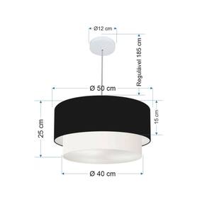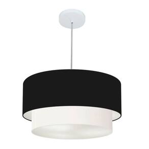 Lustre Pendente Duplo Cilíndrico Vivare Md-4355 Cúpula Tecido 50x40cm - Bivolt - Cor: Preto-branco | Voltagem: 127/220V