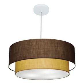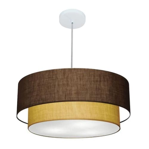 Lustre Pendente Duplo Cilíndrico Vivare Md-4356 Cúpula Tecido 55x50cm - Bivolt Café-palha 127/220v