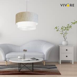 Lustre Pendente Duplo Cilíndrico Vivare Md-4356 Cúpula Tecido 55x50cm