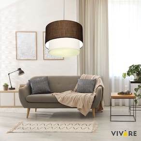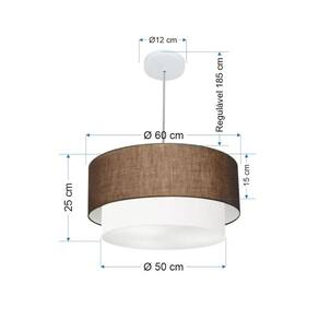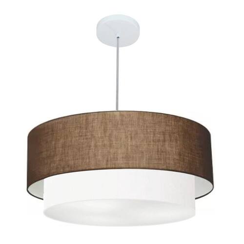 Lustre Pendente Duplo Cilíndrico Vivare Md-4357 Cúpula Tecido 60x50cm - Bivolt - Cor: Café-branco | Voltagem: 127/220V