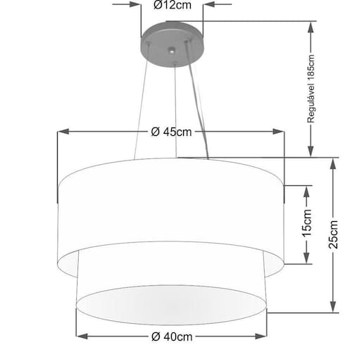 Lustre Pendente Duplo Cilíndrico Vivare Md-4369 Cúpula em Tecido 45x40cm