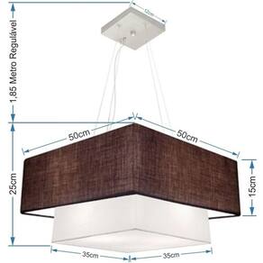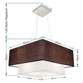 Pendente quadrado apresenta facilidade na instalação e manutenção e limpeza, além de possibilitar o ajuste da altura de acordo com suas necessidades. O que oferecem um charme único aos espaços e estão cada vez mais presentes na decoração.DimensãoCúpula em Tecido: 25x50x35cm