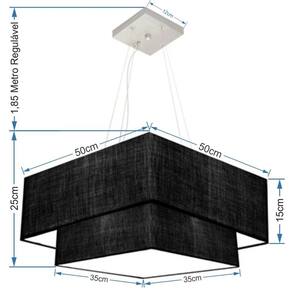 Lustre Pendente Duplo Quadrado Vivare Md-4066 Cúpula em Tecido 50x35cm Preto