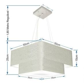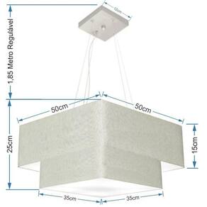 Pendente quadrado apresenta facilidade na instalação e manutenção e limpeza, além de possibilitar o ajuste da altura de acordo com suas necessidades. O que oferecem um charme único aos espaços e estão cada vez mais presentes na decoração.DimensãoCúpula em Tecido: 25x50x35cm