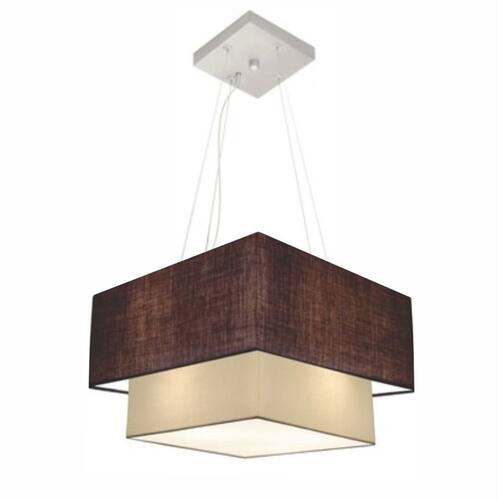 Lustre Pendente Duplo Quadrado Vivare Md-4157 Cúpula em Tecido 40x35cm - Bivolt - Cor: Café-algodão-crú | Voltagem: 127/220V