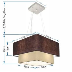 Lustre Pendente Duplo Quadrado Vivare Md-4157 Cúpula em Tecido 40x35cm