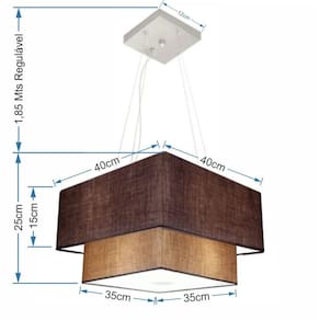 Lustre Pendente Duplo Quadrado Vivare Md-4157 Cúpula em Tecido 40x35cm Café / Palha