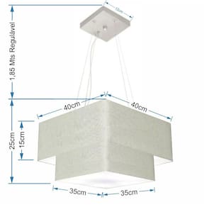 Lustre Pendente Duplo Quadrado Vivare Md-4157 Cúpula em Tecido 40x35cm Rustico Cinza
