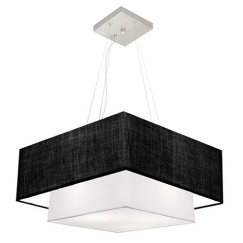 Lustre Pendente Duplo Quadrado Vivare Md-4344 Cúpula em Tecido 45x35cm - Bivolt - Cor: Preto-branco | Voltagem: 127/220V